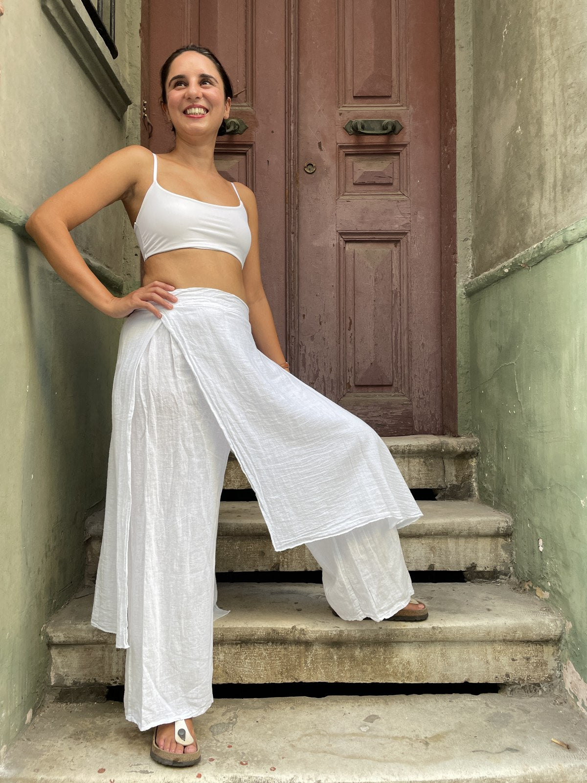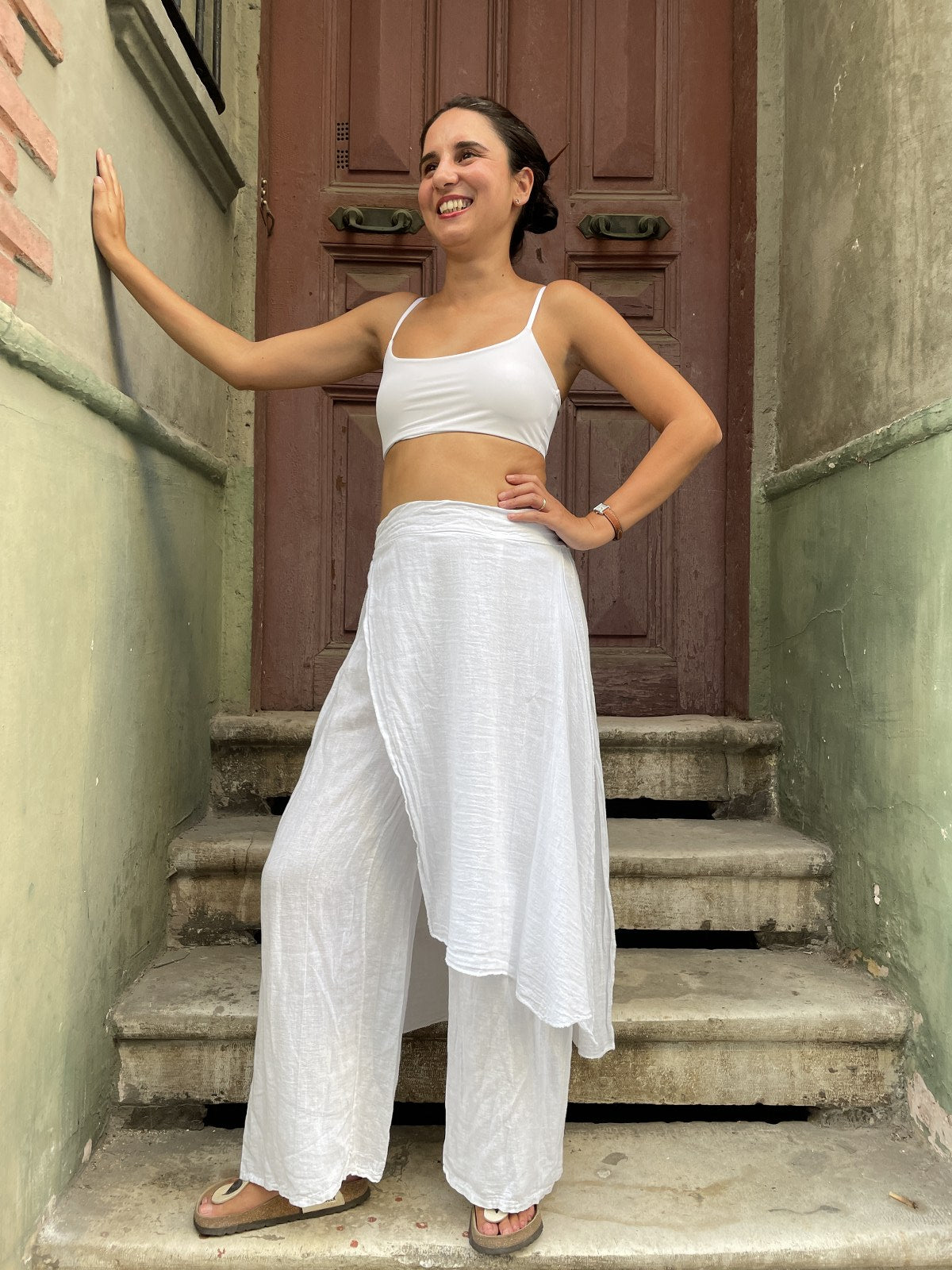 Unisex Kadın Bohem Keten Etekli Pantolon - Doğal ve Bohem Tarz