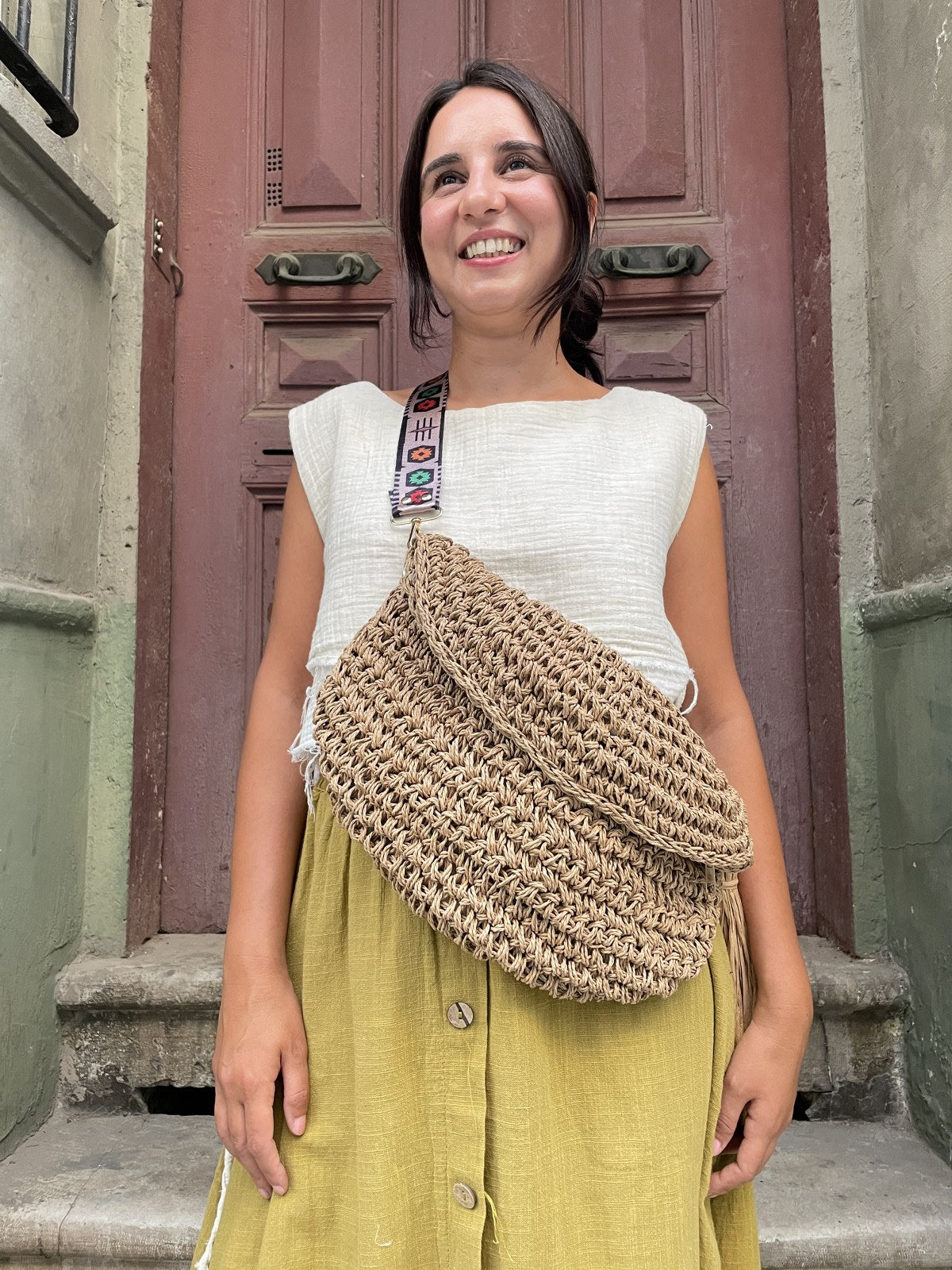 Tasarım Bohem Örgü Bel ve Omuz Çantası – El Yapımı, Kadın Emeği