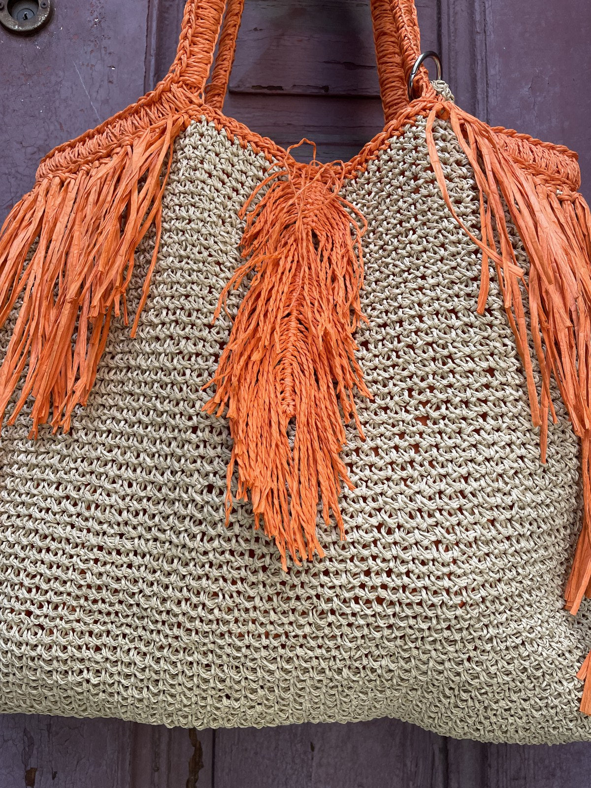 ✔ Renk: Doğal bej üzerine turuncu püskül detayları