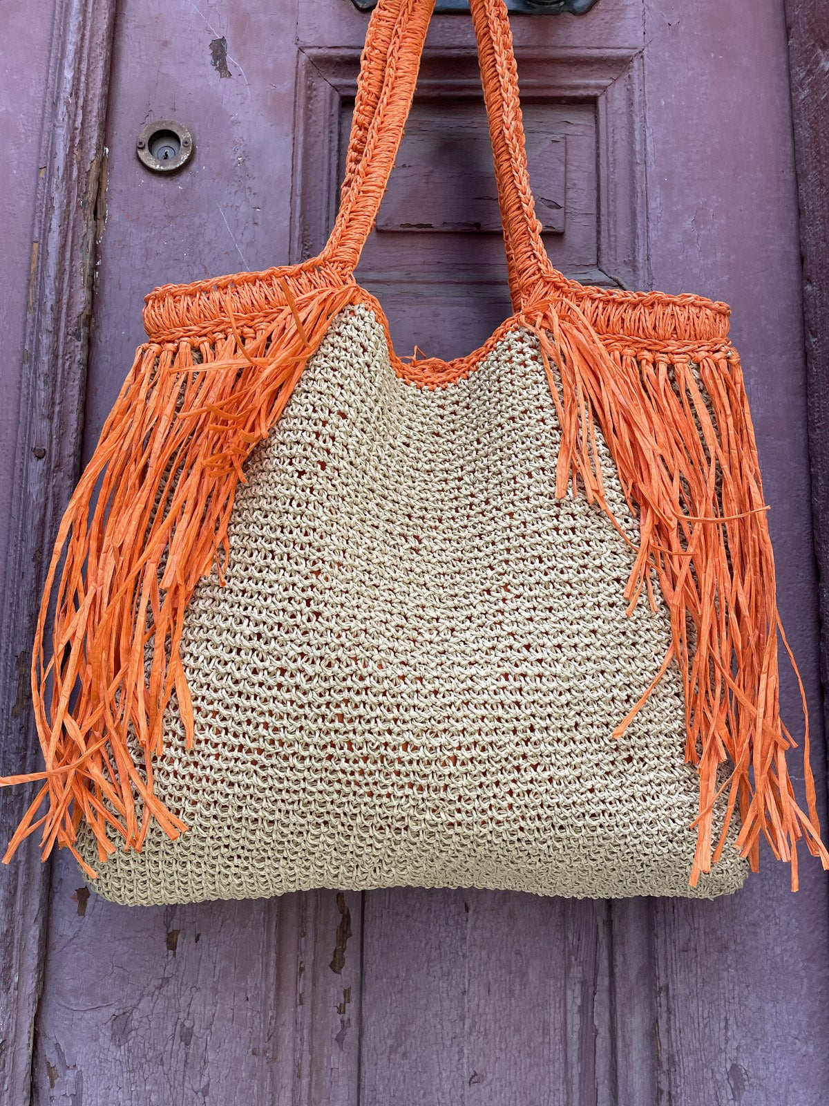 Doğal dokuların zarif uyumuyla tasarlanmış bu kağıt ip örgü çanta, yanında gelen portföy cüzdan ile hem şıklığı hem işlevselliği bir araya getiriyor. El yapımı yapısıyla her parça benzersizdir. Yaz aylarında sahilde, şehirde ya da festivalde stilinizi tamamlayacak ideal bir parçadır.