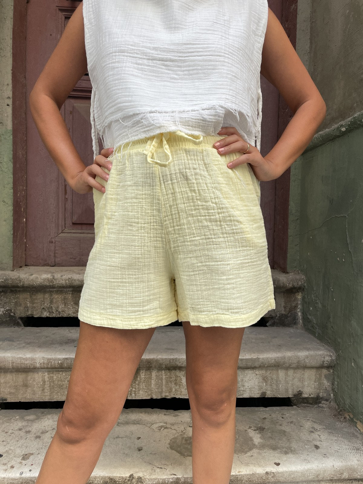 Doğallığın konforla buluştuğu bu yazlık müslin şort, %100 pamuklu yapısı sayesinde sıcak havalarda nefes alabilen, yumuşak ve hafif bir kullanım sunar. Cilt dostu müslin kumaşı ile gün boyu ferahlık sağlar.