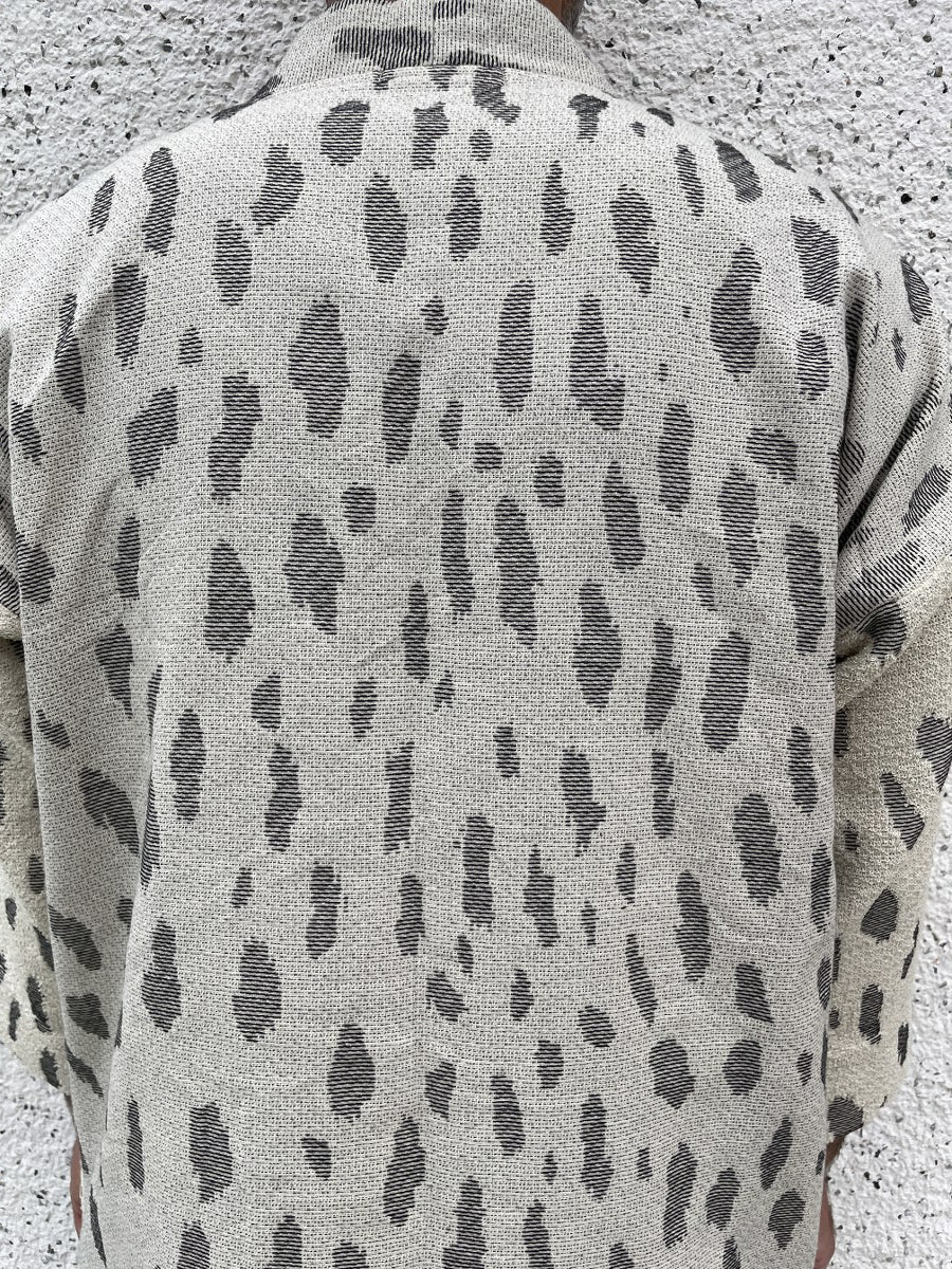 Erkek Kimono Taş Ruhu – Bej Desenli, Kalın Dokulu, Doğal Kumaş, Sürdürülebilir Üretim