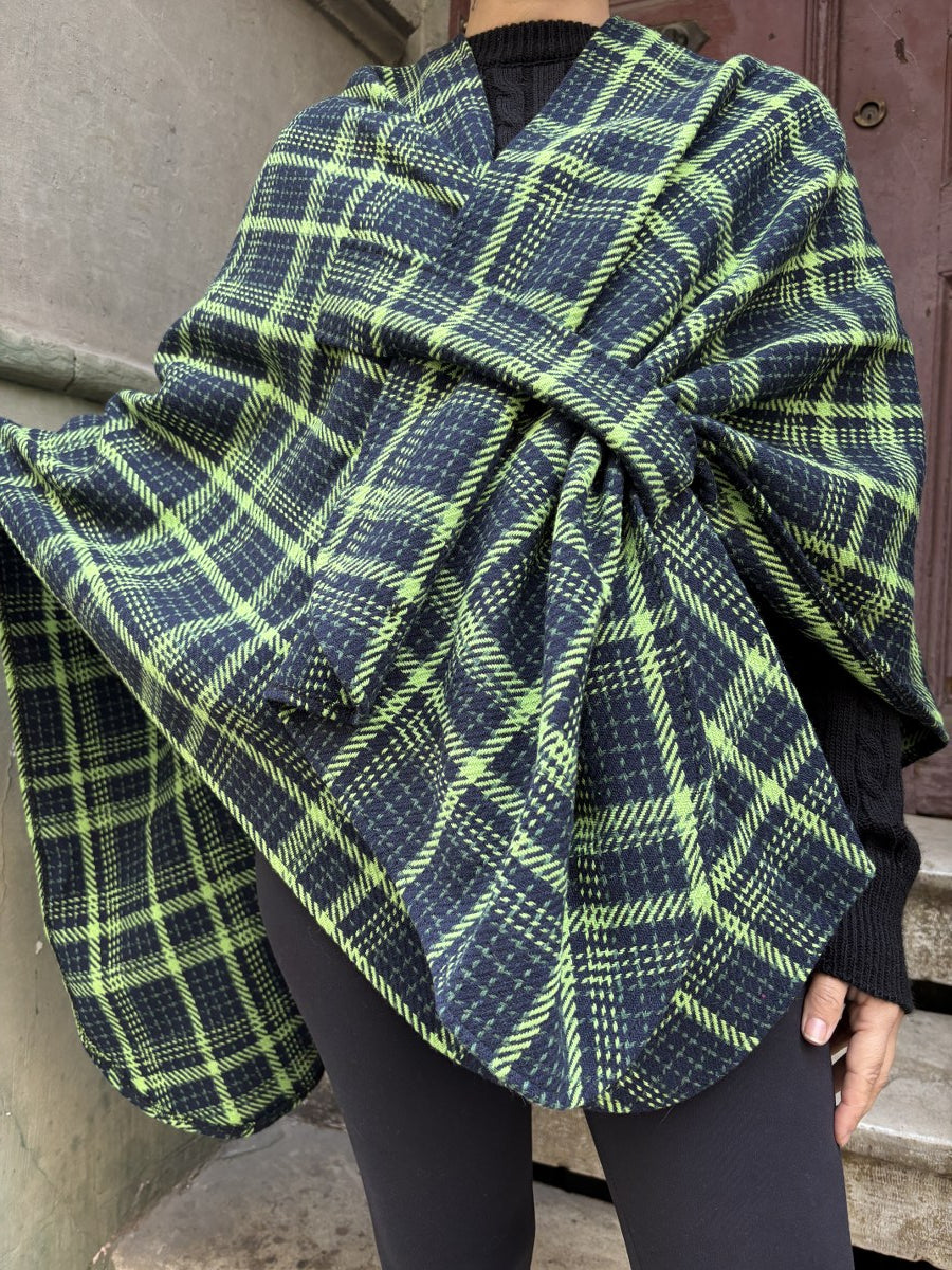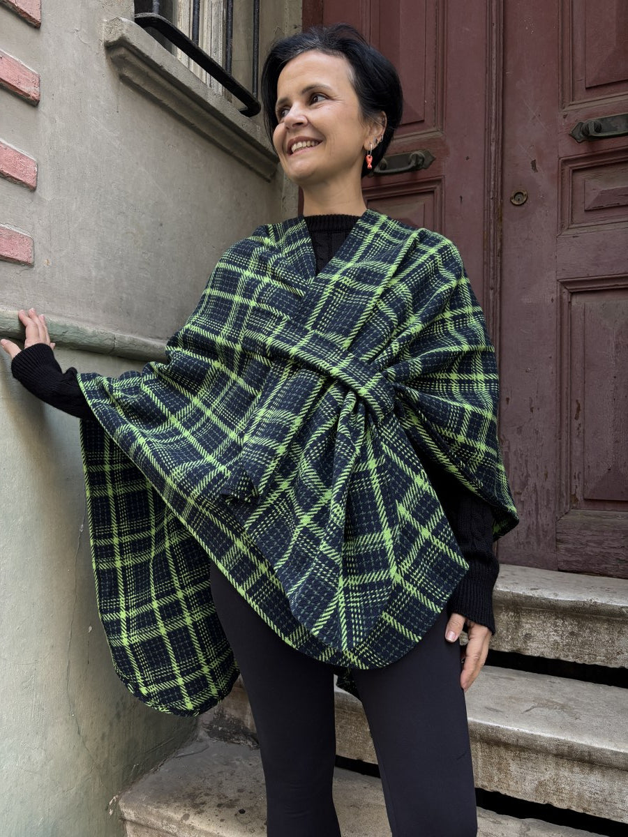 Soğuk günlerde hem sıcak tutacak hem de tarzınızı tamamlayacak bir parça arıyorsanız, renkli ekose pançomuz tam size göre! Canlı pembe, turuncu ve yeşil tonlarıyla enerjinizi yükselten bu panço, bohem ruhu günlük şıklığa taşıyor.