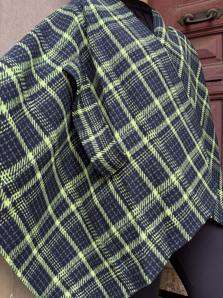 Kadın Renkli Ekoseli Panço – Rahat ve Şık Bohem Tarz