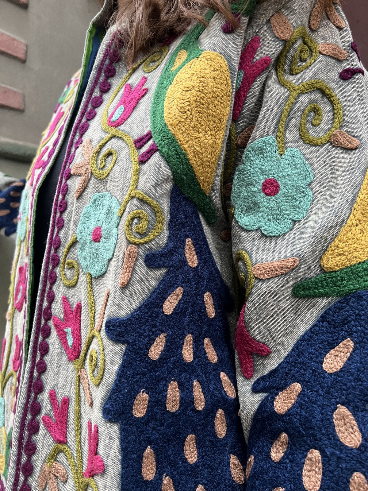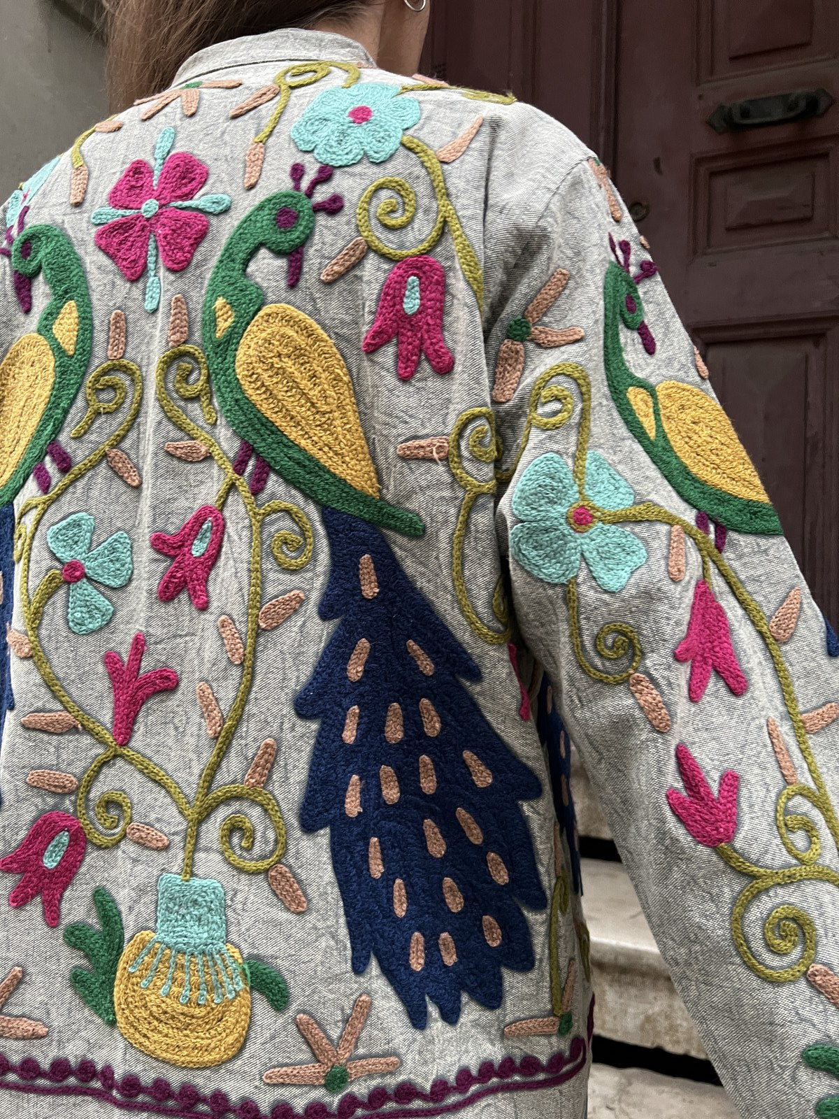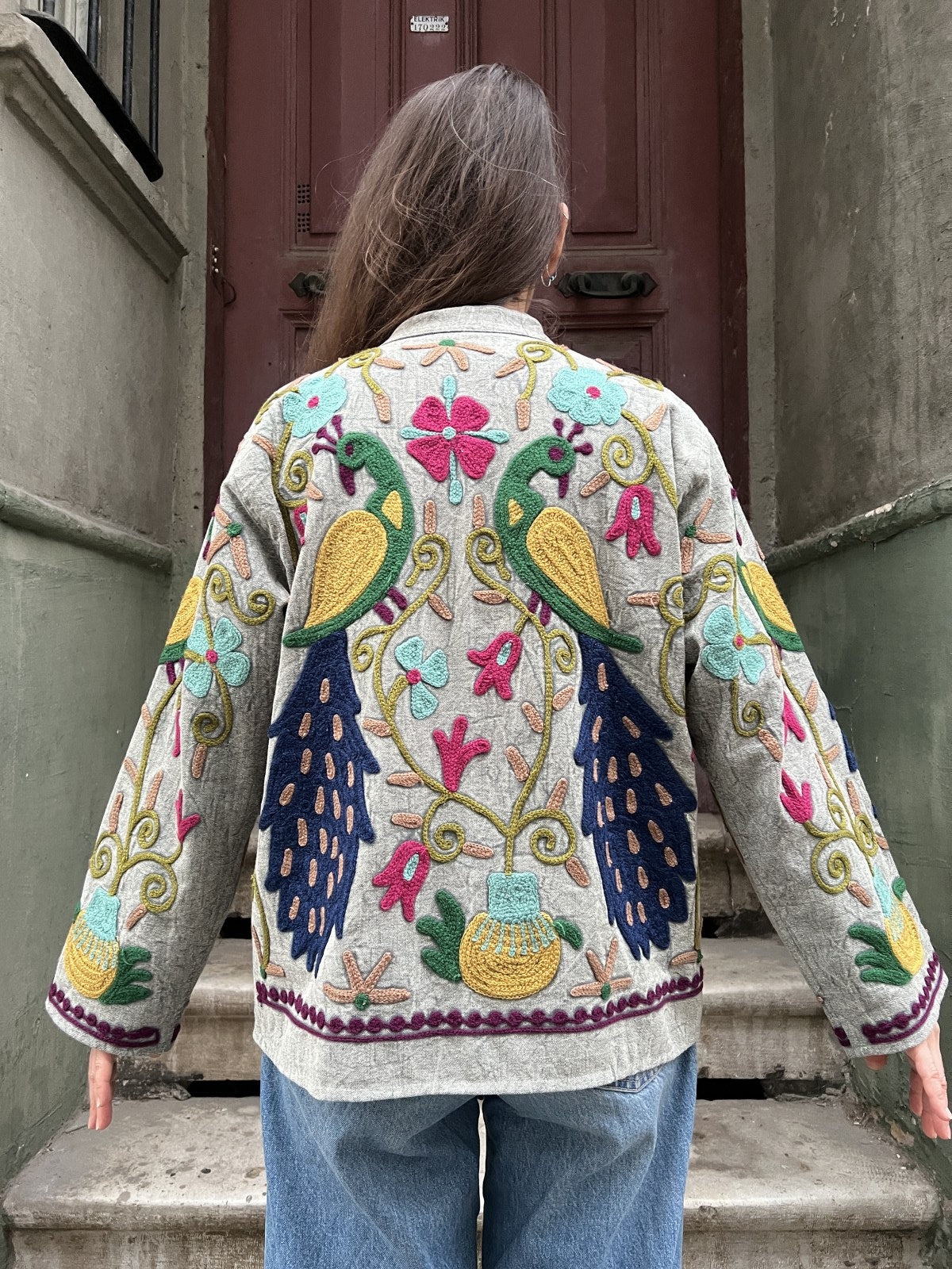 Her bir desen elde işlendiği için her ceket kendine özgü ve tektir. Doğal pamuklu kumaşı ve canlı nakış detaylarıyla zamansız, karakterli ve güçlü bir stil sunar.
