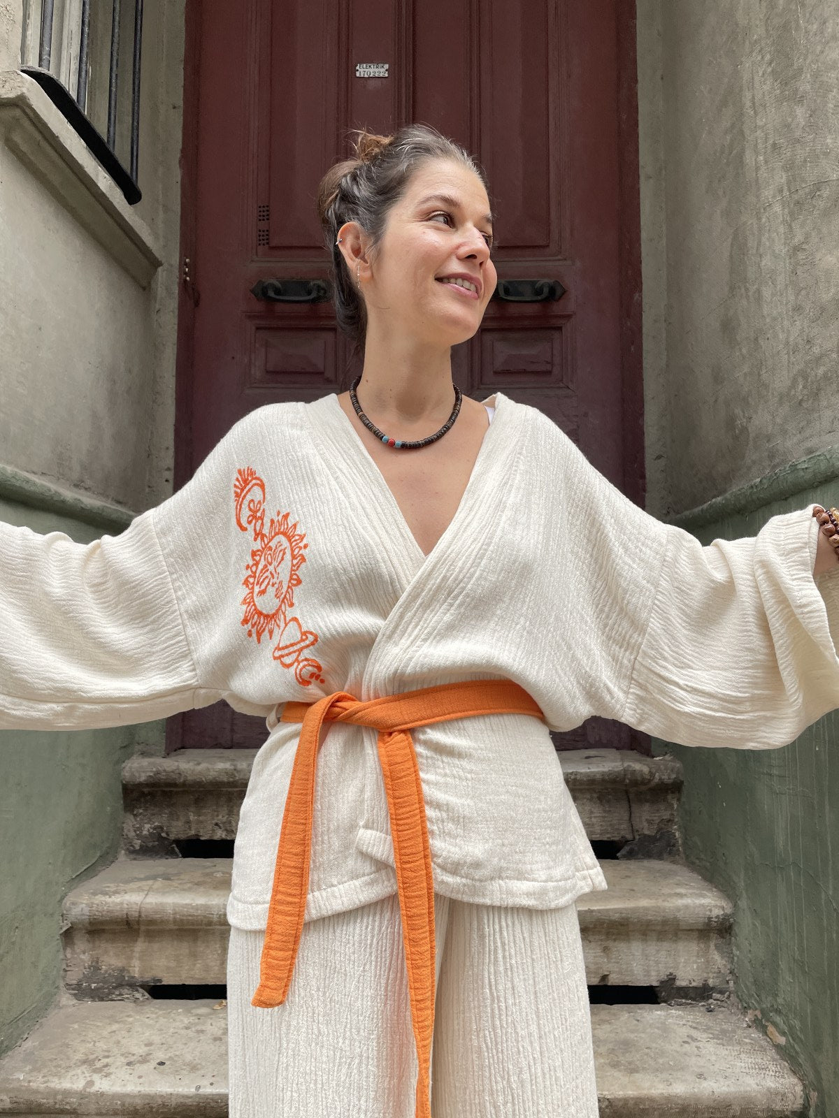 Turuncu Güneş Bohem Kadın Yoga Doğal Kumaş Kimono Takım Yoga Takımı